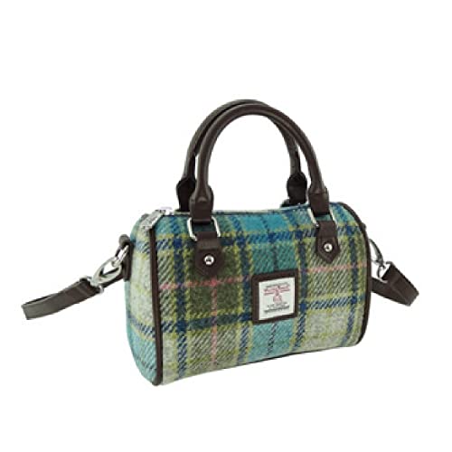 Glen Appin Harris Tweed 'Kilbride' Mini Bowling tygväska, Färg 122 turkos tartan, 19cm x 15cm x 10cm