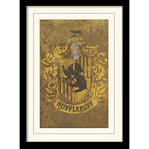 HARRY POTTER Inramat tryck affisch av Hufflepuff Crest 30 cm x 40 cm - Officiella varor