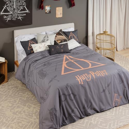 BELUM | Harry Potter påslakan | Modell Deathly Hallows påslakan | Påslakan med knappar | Påslakan 100% bomull | Påslakan (Cama 135/140 (220x240 cm)