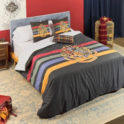 BELUM | Harry Potter påslakan, 100% bomull Modell Hogwarts Black Knappöverdrag för 180 (260x240cm) säng