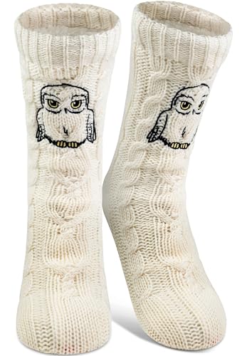 United Labels Harry Potter gosiga strumpor för kvinnor, vit, en storlek 38–43, fluffiga stoppstrumpor med sherpafoder, varma strumpor, hattstrumpor Hedwig