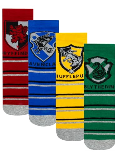 Harry Potter-strumpor 4-pack | Ravenclaw, Hufflepuff, Slytherin, Gryffindor Strumpor för barn | Pojkar Novellstrumpor | Flerfärgad 27-30
