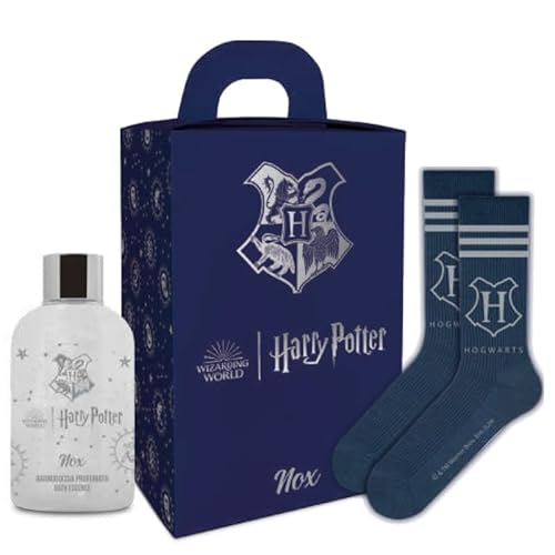 HARRY POTTER NOX | Presentförpackning, Shower Gel 300 ml och officiella Hogwarts-strumpor, blågrå