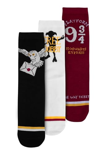 Harry Potter strumpor för kvinnor – Hedwig Dobby Gleis 9 3/4 dam sneakers strumpor (förpackning med 3), flerfärgad, 35-38 EU