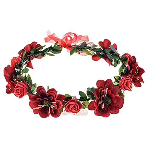 Blomkrans hår hårsmycken blomkrans hårsmycken blomma flicka blommor hårband pannband med blommor flickor för mors dag festival fest bröllop strand festival tillbehör (röd)