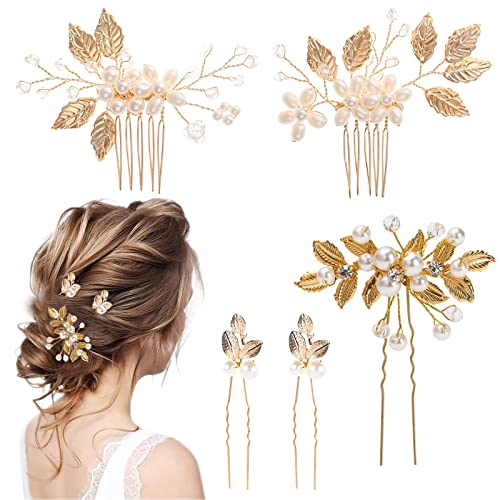 Brud hårsmycken, 5 stycken, hårnålar bröllop, brud hårsmycken pärlor, brud hårsmycken blommor, hårsmycken bröllop, kristall blad hårnålar, för flickor brud brudtärna