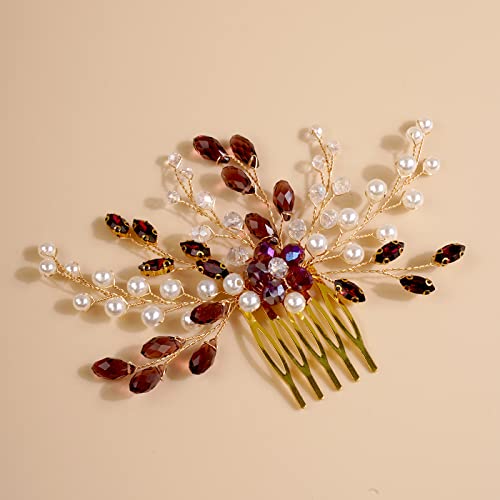Kercisbeauty Mörkröd vinröd kristallhårdel för brudar bröllop fågelunge guld hårkam handgjorda hårsmycken (vin)