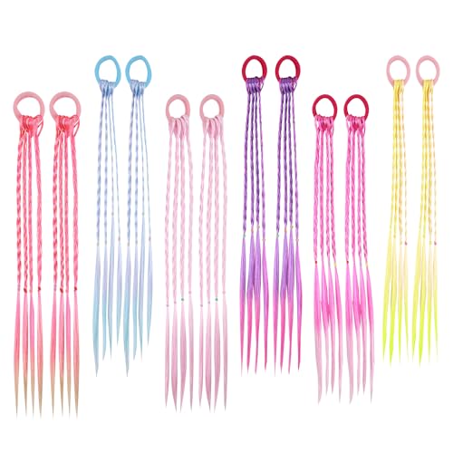 Dalababa 12 st Färgade Flätor Hårförlängningar, Flätad Hästsvansförlängning med Hårsnodd, Naturligt Syntetiskt Hårtillbehör för Barn Flickor Party Festival