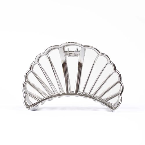 MinoCino hårspänne, stort silverfärgat hårspänne med ihåligt skal för kvinnor och flickor, metallklor för tjockt hår, halkfria eleganta håraccessoarer för dagligt bruk, Halloween-look