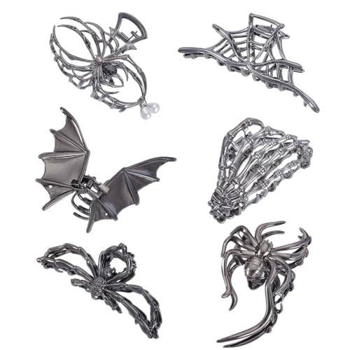 AHANDMAKER 6 st 6 stilar hårklämmor, metall gotiska halkfria fladdermus nät skelett läskiga hårspännen halloween håraccessoarer kloklämmor för tjockt långt hår styling dekorationer