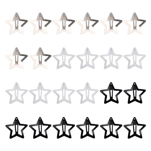 Dokeno 24 stycken stjärnhårspännen, pentagram hårklämmor Y2K-hårnålar metall halkfria stjärnhårspännen retro punk BB hårspännen för kvinnor och flickor (3 färger)