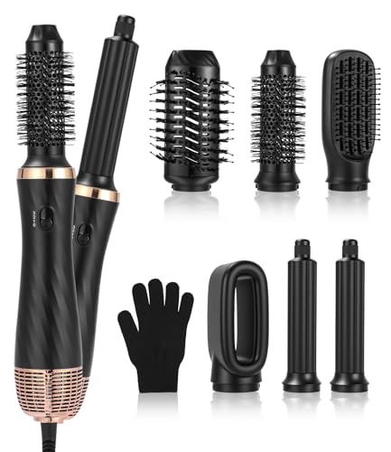 Hårstyler 6 i 1 Air Styler Set med 1000W hårtork, rund borste hårtork, luftflödes locktång automatisk, varmluftsborste utjämningsborste, hårtorkborste, för hårvolym, utjämning, torkning, lockar
