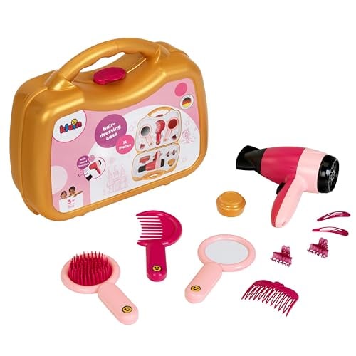 Theo Klein 5559 Frisörväska I Robust väska med elektrisk hårtork I Inkl. spegel, borste och stylingredskap I Leksak för barn från 3 år och uppåt