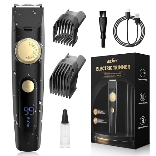Sejoy Skäggtrimmer för män, klippare för hårklippning, trådlös hårklippare för mustasch hårtrimmer med LED-display för hem, vuxna, barn, svart
