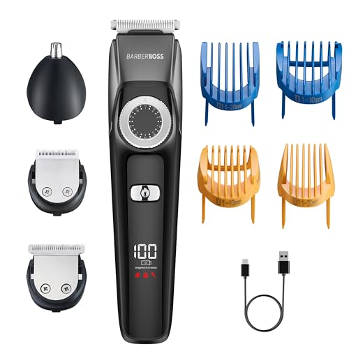 Barberboss 3-i-1 skägg- och hårtrimmer för män, trådlös groomingkit med näsa/örontrimmer, justerbar urtavla, keramiska blad, vattentät och USB-laddning, groomingkit för män
