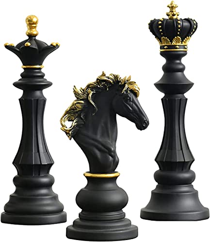 Schackstaty staty harts schack prydnad kung queen war häst harts hantverk figur art deco hemmakontor vin skåp, 3 st.,B