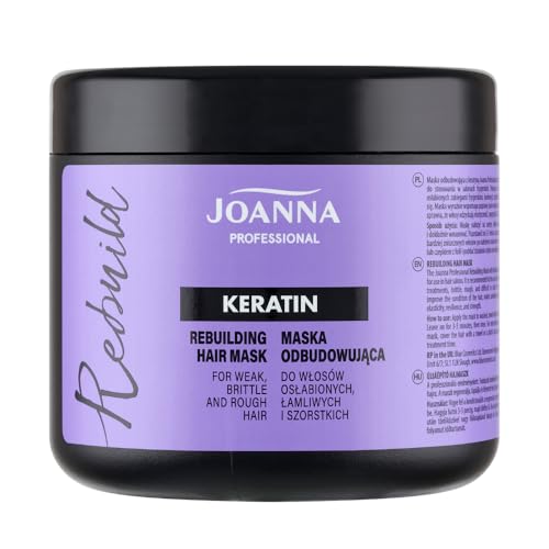 Joanna Professional keratin hårmask – för sprött hår – innovativt komplex med aktiva ingredienser för aktiv hårväxt – professionell keratinprodukt mot håravfall och hårbrott – 500 g