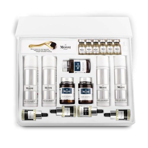 The Mossi London 6 månader set efter hårtransplantation, 4x hårklippningsserum för hårväxt, 3x hårförlust schampo, 1 x hårvitamintabletter, 2x hårolja för torr skalp, hjälper till att växa hår för män