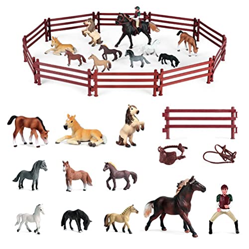 HUSHUI Häst djurfigurer, simulering häst och ryttare figur modell med staket gård simulering djurfigurer set emulerande lärande leksak