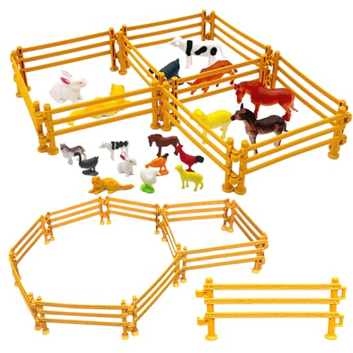 Zamety 60 stycken häststaket, leksaker, 12 stycken bondgårdsdjur, minihäst korral, fäktor, djurfigurer, set, gör-det-själv häst corral djur, bondgård, leksak för mikrolandskap, dekoration och