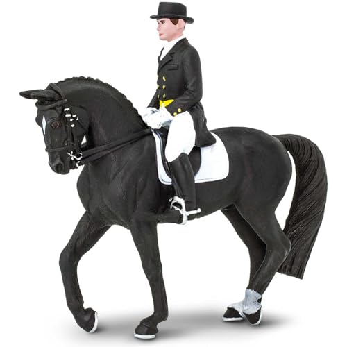 Safari Ltd. James on Dancing Bells Leksaksset – realistisk häst och ryttarmodell – pedagogisk leksak för pojkar, flickor och barn från 3 år, svart, vit