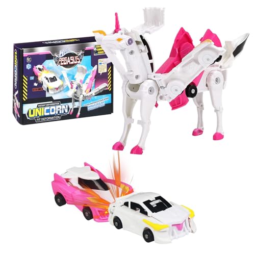 Goorder 2 stycken enhörningsrobotar, kollision och deformation kombinerad robot, omvandla bil robotleksak, 6 år flicka pojke, flygande häst leksak
