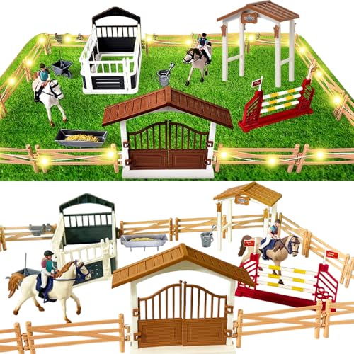 HuaMuDM häststall leksak hästklubb, leksak, hästkoppel häststall, häststall leksaksset med LED-ljus, häststall leksak med hästfigurer, häst lekset hästkoppel