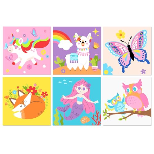 lxmydm Måla efter siffror 6-delat djurset för 5-6-7-årig flicka sjöjungfru häst uggla alpacka fjäril räv med polypropylenfärg lämplig som gåva 20 x 20 cm