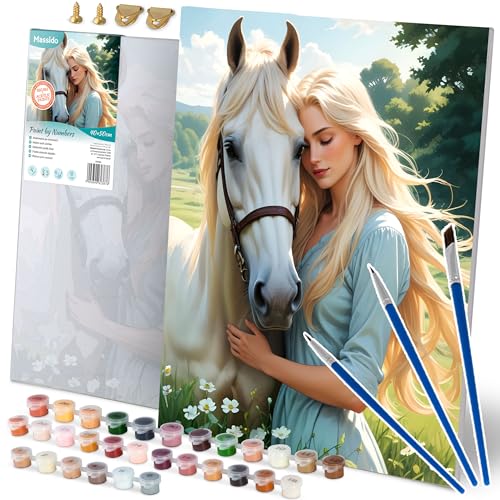 Massido måla efter siffror 40 x 50 cm, set med 3 penslar 30 färger krokar häst
