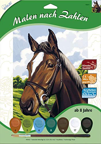 Mammut 105050 – måla efter siffror djurmotiv, häst, komplett uppsättning med tryckt målarmall i A4-format, 7 akrylfärger och borstar, målars