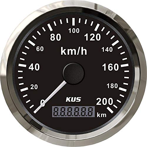 KUS hastighetsmätare, vattentät GPS, 0-200 km/h, för bil, motorcykel, lastbilar, 85 mm (svart)