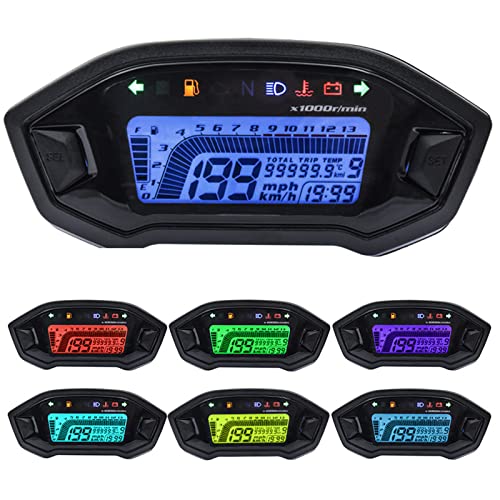 PACEWALKER Universell hastighetsmätare för motorcykel, LED, LCD, hastighetsmätare, digital vägmätare, bakgrundsbelysning för 1,2,4 cylinder för BMW, Honda, Ducati, Kawasaki, Yamaha (professionell installation krävs)