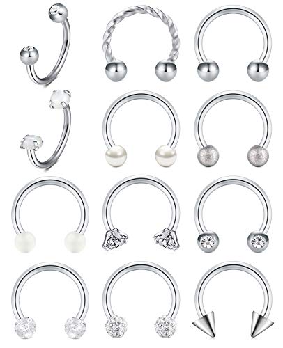 Crdifu 6 st hästsko näspiercing näsring set kirurgiskt stål 1,2 mm läpp näsa Helix Tragus öronpiercing smycke 8 mm ring, Metall
