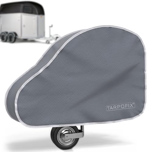 Tarpofix® dragstångsskydd hästsläp | dragstångskåpa, släpvagn med dubbel klickstängning | dragkrokskydd vattentät | universellt personbilsdragstångskåpa släpvagn (grå)
