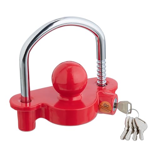 Relaxdays Släpvagnslås för kopplingar, 5 nycklar, stöldskydd person- och hästsläp, husvagn, röd/silver