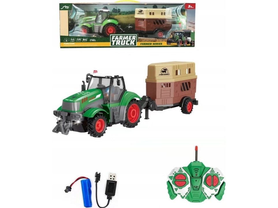 Leantoys Traktor Med Hästsläp Sound Green Farm