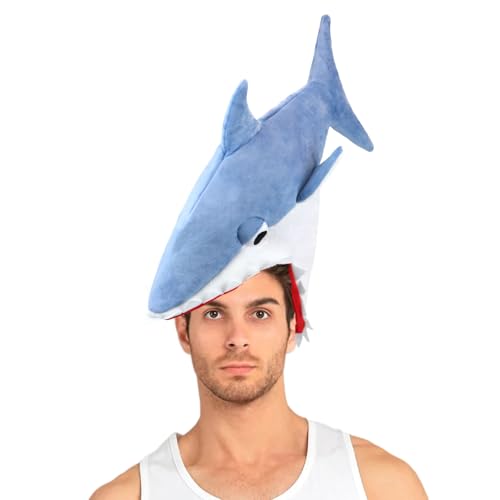 GlamRays hajhatt, skrattande plysch mössa, maskerad hatt för haj, födelsedagsfest dekorationer, blå, L