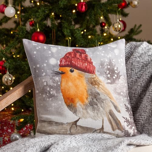 Evans Lichfield Snöig Robin med hatt akvarell fjäder rik fylld kudde