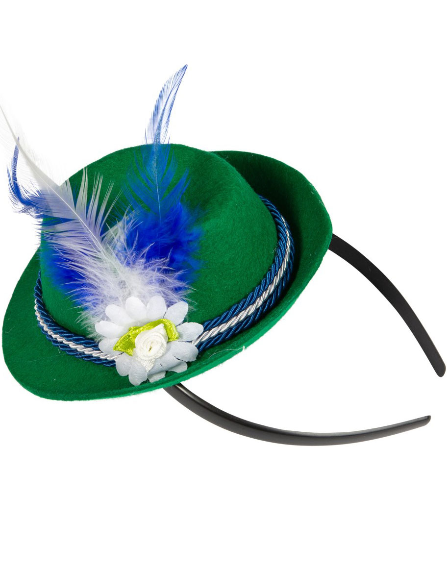 Grön Oktoberfest Hårbåge med Hatt och Fjäder