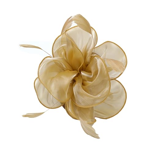 CCAIPU Blomma fjäder fascinatorer hatt för kvinnor, eleganta blommor fjädrar näthattar ascot hatt hårtillbehör bröllopshattar, Guld, en storlek