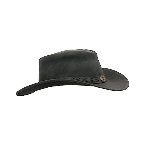 WALKER AND HAWKES - Brun premium kohud läder cowboy hatt med snöre utomhus antik hatt utomhus solskydd unisex, Svart, L