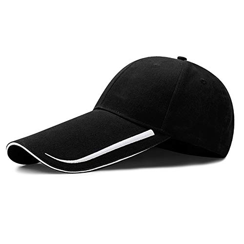 YEKEYI Extra lång skärm 100% tvättad bomull baseballkeps förlängt brätte solskydd hatt lång stor skärm keps, Svart, en storlek