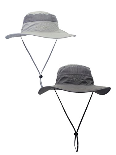 WANYING Kvinnor män utomhus bucket hatt fiskarhatt med hakband andas snabbtorkande solskydd för huvudomkrets 56–60 cm, 2 stycken – ljusgrå och mörkgrå, 56-60