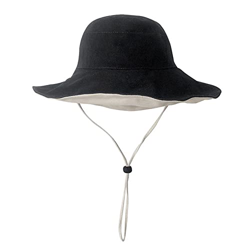 Fhioevt Vattentät och snabbtorkande solhatt för kvinnor, tunn vikbar fiskarhatt med brett solskydd kant, justerbar hatt, Svart/grå, 56/62 cm