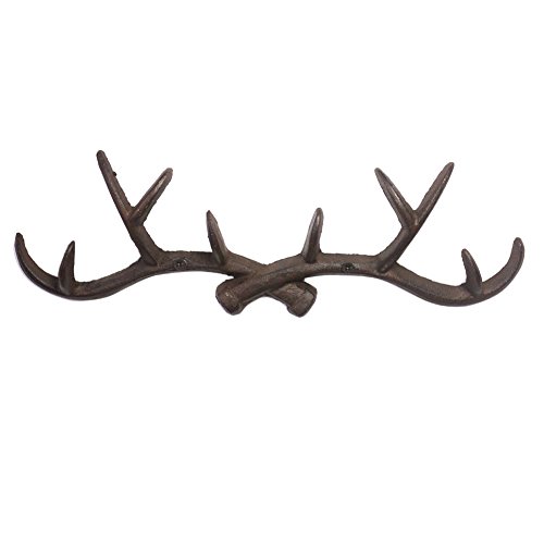 KiaoTime l Vintage 35,5 cm Rustik Gjutjärn Hjort Hjorthorn Väggmonterade Klädkrokar, Shabby Chic Klädställ, Nyckelhållare, hatthängare, Badrum Vägghängare (Rostbrun)