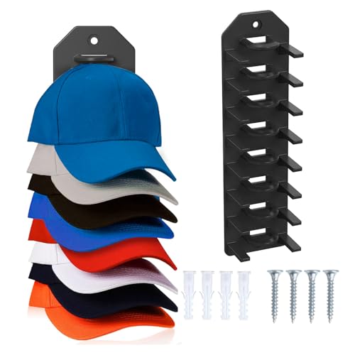 2st Hatthyllor för Baseballkepsar, Metall Hatthållare Hattförvaringsorganisatör Hatthängare Display Väggborrad för Dörr Sovrum Garderob (Svart)
