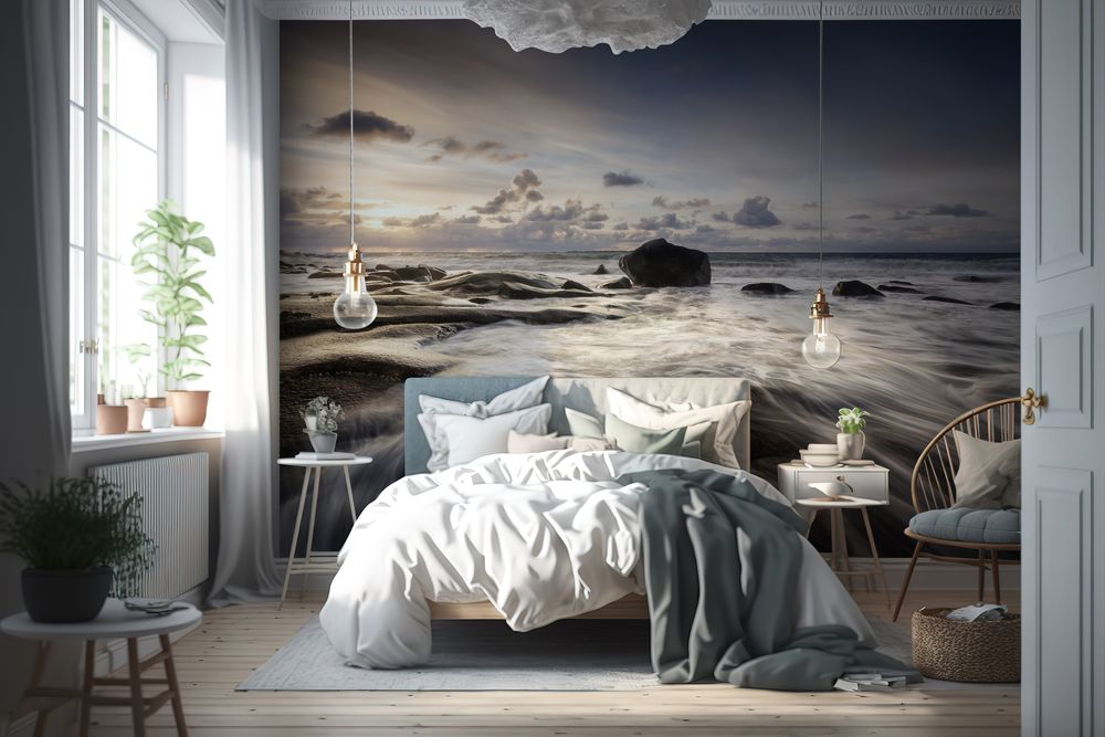 Fototapet -Stenar vid solnedgång - Hall - Scandiwall - Hav