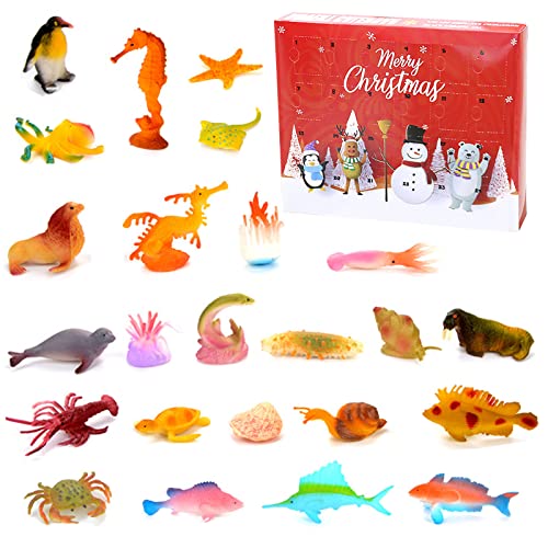 24 stycken havsdjur adventskalender, barn adventskalender, jul adventskalender leksaker, undervattensdjur leksak havsdjursset, pojkar flickor julkalender, present