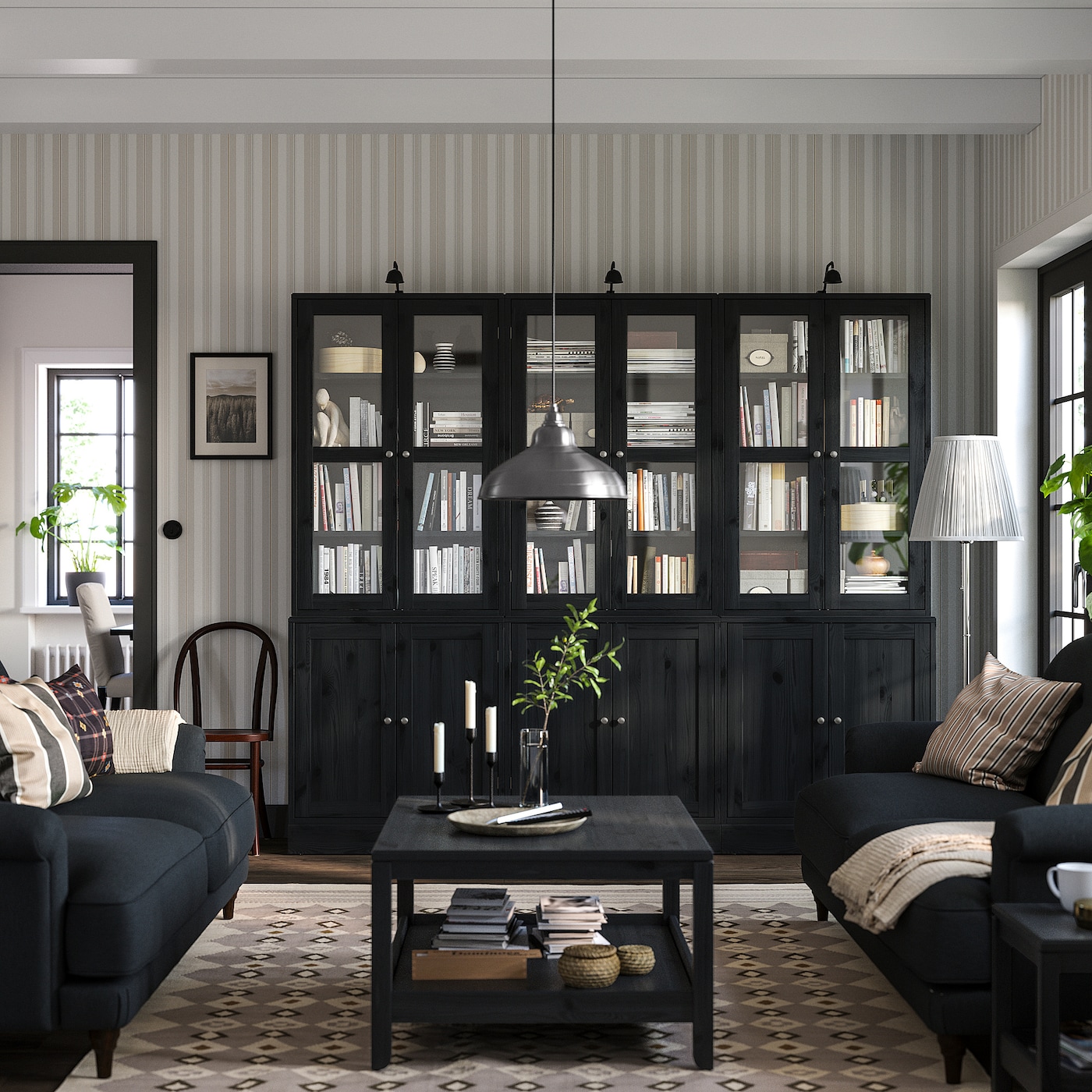 IKEA HAVSTA förvkomb m skjutbara vitrindörrar, svart, 242x47x212 cm, cm 242x47x212 cm