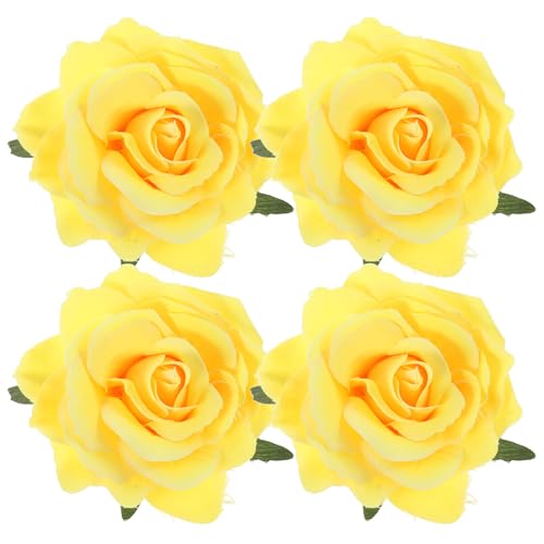 PRETYZOOM dam rosa hårnål, blommor, bohemisk brosch Boho hår tillbehör för bröllop Hawaii strand semester dekoration 4 st (gul)